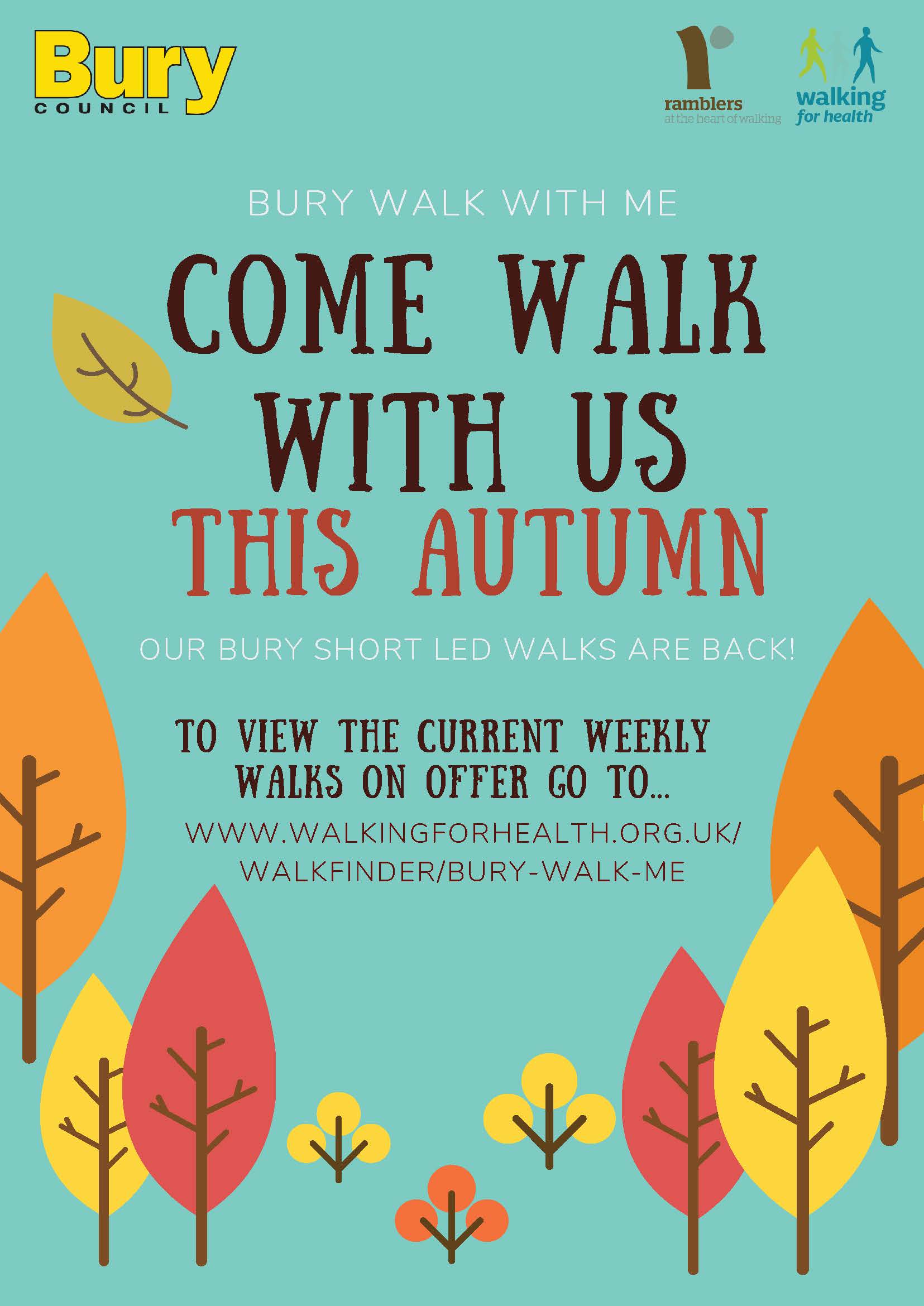 Bury walk with me have supplied a leaflet with 10 short led weekly walks currently on offer.