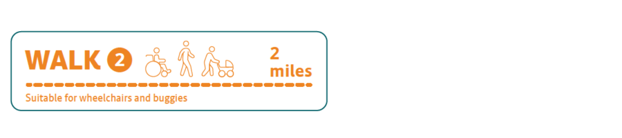 Route 2 – 2 miles. This route is accessible and suitable for wheelchairs and buggies/prams